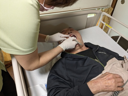 訪問診療時に歯科医師と一緒にリハビリの専門職である理学療法士も同行いたします。診療時の良肢位確保などを実施します。また飲み込みが困難な方、唾液が出ずらい方などの姿勢やポジショニングなどのアドバイス、調整、ご相談なども行います。